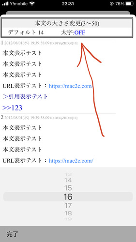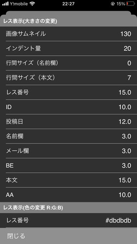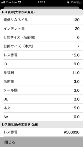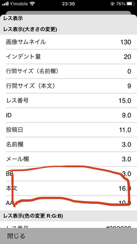 設定の【レス表示(大きさの変更)】の本文のとこを押せば画面が切り替わって
