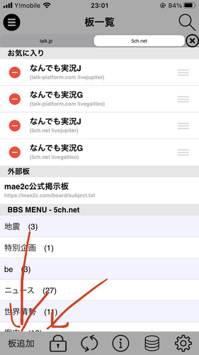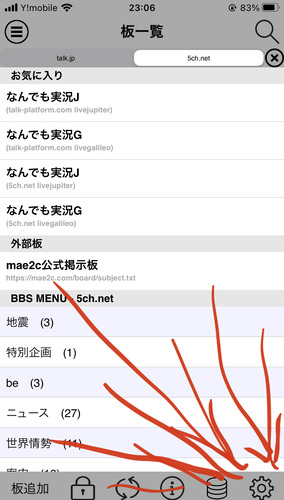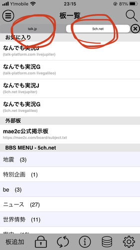 あとtalkの板一覧は最初は入ってないから左下の「板追加」ってのタップして