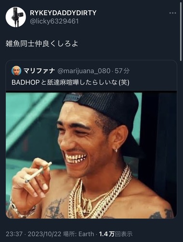 バダサイとか元々半端者のマイルドヤンキーだろ スニッチタイプの小悪党なんだから無理すんなや 誰かとモメても結局だんまりで有耶無耶にしてんじゃん