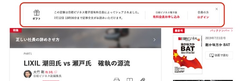※こちらのページで日経ビジネス電子版の「有料会員」と「登録会員(無料)」の違いも紹介しています。