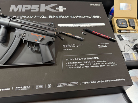 電動ガン「MP5K+」は内部機構をリポバッテリー対応にしたリニューアルモデル。「FET回路」を搭載することで各所の異常を感知してストップする安全対策、切れのいいレスポンスを実現している。アッパーフレームはカーボン入り強化樹脂で耐久力をアップ。ロアレシーバー、フォアグリップはガラス入り樹脂でこちらも耐久度を増している。装弾数41発の新型マガジンを採用。