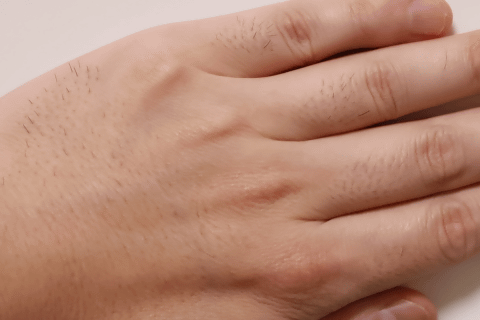 ちなみに効果は段階的に実感できて、計2回照射を行なった際には、1週間経つと薬指や小指、さらに手の甲の外側などにまだ毛が伸びているのが確認できるものの、最初の状態と比べると毛の長さは短くなっており、明らかに伸びるスピードが鈍っていることがわかりました。