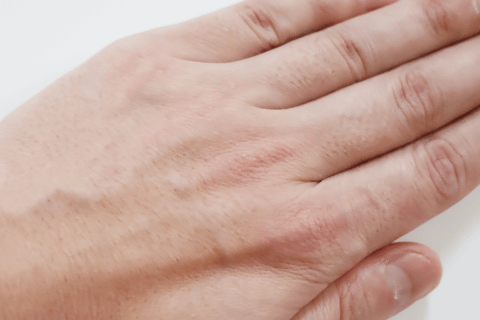 次に、3回照射を行なった左手を1週間放置すると、違いは一目瞭然。多少は黒い毛穴が点々と見えるものの、以前のようなモサっとした指毛は消えており、肉眼で見ても毛が伸びている印象はほとんどありません。この程度であれば無理に剃らなくても不快感を与えることはなく、手の毛のお手入れにかかる手間は大幅に減りそうです。