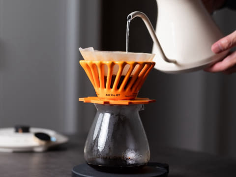 2層となっている格子構造は、ドリップ時の水流の流速や均一性が最適化されるよう、角度や形状を緻密に設計されている。また、側面には空洞を設け、フィルターが空気に触れるように開放することで、抽出時にコーヒー粉から発生する二酸化炭素を効率的に排出。最適化された水流により抽出効率と香りの表現力を向上させ、効率的な二酸化炭素の排出により過度な酸味の発生を抑制し、クリーンで明るく、味わいのあるコーヒーを淹れられるとする。