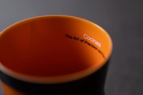 カップの底面をなめらかな曲面に仕上げることで、注いだコーヒーがカップ内部で自然に循環するように設計されている。コーヒーが循環することで香りが持続的に立ち上がり、さらに、香りが広がりやすいよう開かれた縁の形状と、カップ全体が優雅に揺れるように調整された半球状の底面が、その揺らぎとともに香りを効果的に拡散する。これにより、豊かな香りを十分に楽しめる。