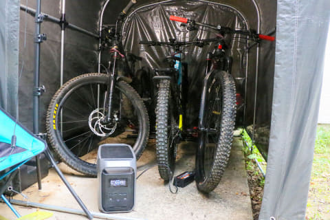 メインで使用している「DELTA Pro 3」とエクストラバッテリーの蓄電システム以外にも、エコフローのポータブル電源を活用しています。映像クリエイターとしても活動しているため、編集などの作業を行なう部屋には卓上用電源として「RIVER 3 Plus」とエクストラバッテリーを設置。また、貸し出し用のe-bikeやエアコンを動かすための補助電源として「DELTA 3 1500」も導入しています。
