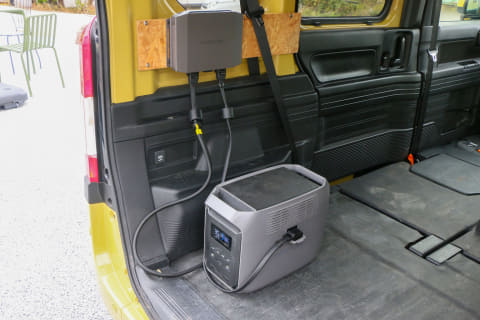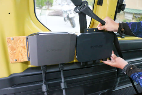 そんな製品の中でも、活躍する機会が多かったのが「800W Alternator Charger」です。これはクルマのバッテリーに接続すると、シガーソケットとは比べ物にならない速さでポータブル電源を充電できるというもの。普段からe-bikeの運搬や車中泊をしながらの出張などの際に活躍しているホンダの「N-VAN」に装着して使用していました。移動中に効率的に充電できるので、主に「DELTA 3 1500」を接続して充電していたとか。