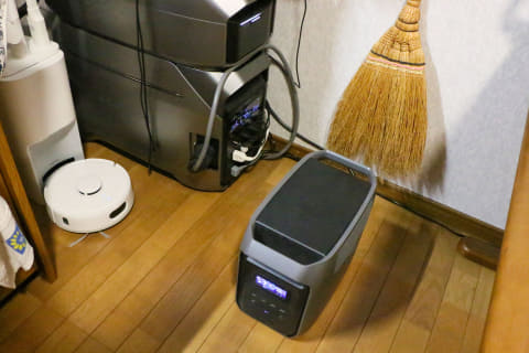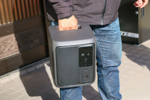 エコフロー製品を使い倒している人なので、新製品の「DELTA 3 1000 Air」も試してもらいました。1,000Whクラスの製品としてはコンパクトで持ち運びやすいのがメリットです。片手で持ち運びやすいので、野外での作業などには使いやすいという印象だとか。また、利用者の集うリビングスペースに設置しておけば、スマホの充電などに使ってもらいやすいだとろうと斎藤氏は話していました。