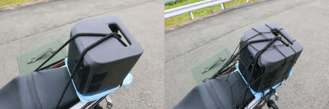 もう1つ、斎藤氏が話していたのが「これならバイクの荷台に積んで運べるかもしれない」ということ。ライダーハウスには多くのツーリングライダーが訪れますが、彼らの悩みは電源の確保だとか。ナビゲーションなどでスマホを利用し、カメラで動画を撮影していたりするので、充電場所を確保するのはツーリングライダーには必須です。コンパクトなモバイルバッテリーを持ち歩いていることがほとんどですが、充電のためにキャンプではなくライダーハウスを利用する場合もあるようです。容量が1,000Whあれば、そんな悩みも解決しそう。そこで、オートバイのキャリア部分に積んでみることにしました。今回は新製品発表会後にそのまま「DELTA 3 1000 Air」を預かってきたので用意できませんでしたが、ツーリングに出かけるなら防水性のあるバッグなどに入れたいところです。