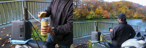 蓄電池以外にも斎藤氏は多くのエコフロー製品を活用しています。除草や除雪の作業の際にはソーラーパネルで発電できる「EcoFlow Power Hat」を着用。卓上の作業中は「RAPID Magnetic Power Bank (5,000mAh)」をスマホスタンドのように常用しているとか。ガレージや屋外での作業で、暗くなってきた際には「三脚スタンド付きライト」も活用しています。このライトは、ライダーハウスの利用者や仲間と芋煮会をする際にも活躍しているとのことでした。