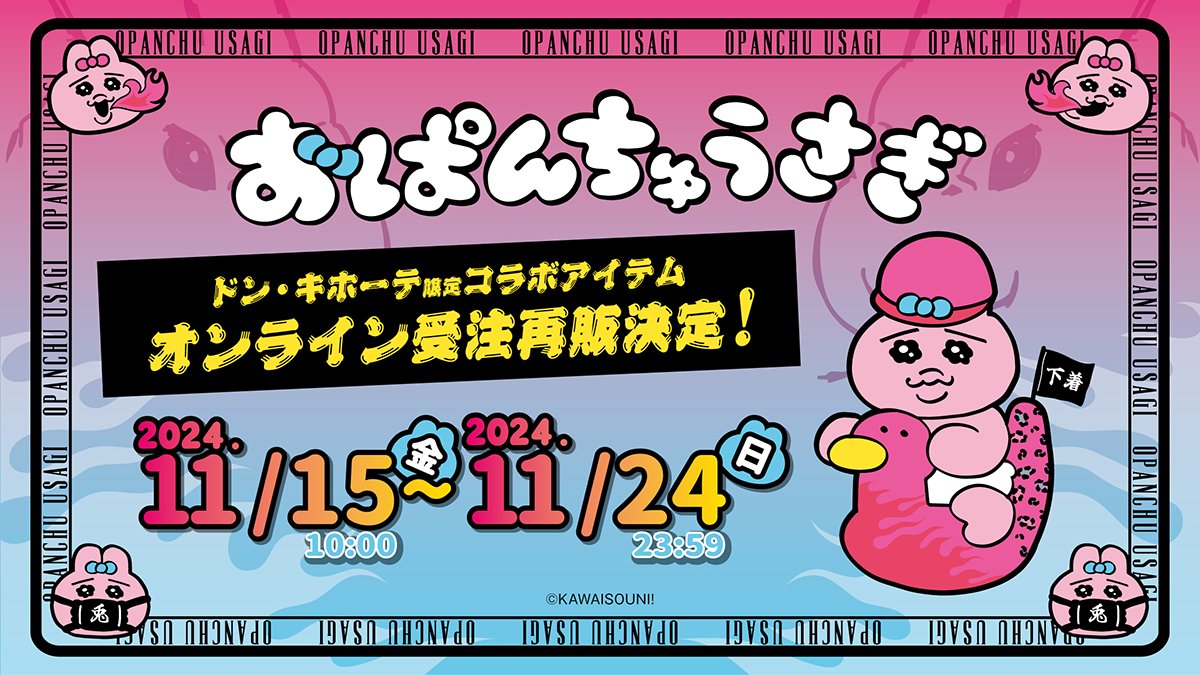 @donki_donkiいろんな「学生」姿の「おぱんちゅうさぎ」グッズが全国のドン・キホーテ、アピタで発売! #可哀想に !先生描き下ろしイラスト使用によるドンペン・ドンココラボグッズも発売します♪ 発売日:11月15日(土)午前9時より順次発売! 展開店舗はこちら donki.com/products/opanc… pic.x.com/uxoEwWv61s