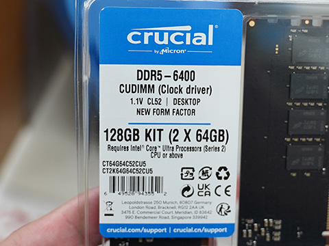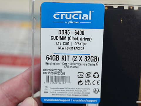 CrucialのDDR5-6400対応CUDIMMに新モデル、32GB×2枚組と64GB×2枚組モデル