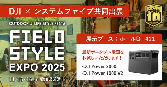 株式会社システムファイブ(本社:東京都千代田区、代表取締役社長:小川 行洋)は、ドローン技術の世界的リーダーであるDJIと共同で、2025年11月15日(土)・16日(日)にAICHI SKY EXPOにて開催されるアジア最大級のライフスタイル展示会「FIELDSTYLE EXPO 2025」に出展いたします。