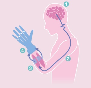 手の指を動かす筋肉は前腕に集中しており、「グー」「パー」などの形に指を曲げると特定の筋肉が動くのが観察できる。その際に発生する電気信号は、手の形や利用者に応じて特有の波長パターンとなる。この波長パターンをAIに分析させ、学習させる。