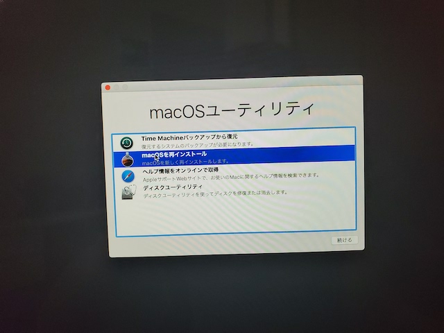 å¾ã¯OSã¤ã³ã¹ãã¼ã«å¾ããããã¯ã¤ã³ã¹ãã¼ã«æä¸ã«TimeMachineãã復å ï¼åã¯ãã¡ãã鏿ãã¾ããï¼ãã¦å®äºã§ããããã§èµ·åå¾ã«è¡¨ç¤ºããããã¨ã¯ãªããªãã¾ããã