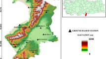 Further we find that the gradual increase of the specific humidity with temperature (see Fig. 13) is not consistent with the decrease of precipitation intensity (Figs. 6, 9, 10, 11, 12). This indicates that the projected increase of water vapor is not enough for saturation of air mass at higher temperatures to induce extreme precipitation; the rise in temperature does not increase the moisture availability endlessly in the atmosphere to trigger intense rainfall (Westra et al. 2014). It limits precipitation intensities after a specific temperature. This also can be due in part to the dynamic and thermodynamic influences on the atmospheric moisture content (Dairaku and Emori 2006; Pall et al. 2007).Thermodynamic changes due to an increase in the concentrations of greenhouse gases in the atmosphere modify the temperature and give rise to changes in water vapor availability. Similarly, dynamic changes due to the motion of atmospheric moisture content modify the nature of atmospheric circulation and alter the intensification of precipitation. Dynamics such as circulation patterns may suppress cloud formation and extreme precipitation. Another possible reason can be the evaporative cooling effect. When very heavy precipitation occurs, it increases the net water vapor storage for the first few hours (Zhao et al. 1997) and forces the air temperature to cool due to an evaporative cooling effect. A reason could also be associated with the soil moisture feedback to the atmosphere. Berg et al. (2015) highlighted that summertime-mean temperature and precipitation are negatively correlated due to the land–atmosphere interaction through soil moisture evapotranspiration. In general, evapotranspiration is controlled by the soil moisture availability or by atmospheric demand such as temperature, vapor pressure deficit and wind speed etc. Thus when soil moisture controls surface turbulent fluxes, the land–atmosphere feedback subsequently impacts on the low-level atmosphere (Seneviratne et al. 2006).