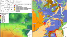 Strong seasonality is observed in groundwater-level fluctuations in monitored aquifers in all three geological contexts and reflects the seasonally humid climates of each monitoring site (Fig. 2). In the south (i.e. Cococodji and Allansakomey sites), rainfall usually occurs between March and October. Mean annual temperature, rainfall and Penman-Monteith reference evapotranspiration (ET0) obtained at three weather stations located in southern Benin between 1980 and 2009 are 32 °C, 1,148 and 1,549 mm, respectively (Achidi et al. 2012a). In central Benin (Natitingou site), the rainy season is slightly shorter (April to October); mean annual rainfall (1,163 mm), mean air temperature (33 °C) and ET0 (1,516 mm year−1) measured at two weather stations for the 1980–2009 period are very similar to that recorded in southern Benin (Achidi et al. 2012a). All sites are situated on surfaces of low relief with mean slopes based on Shuttle Radar Topography Mission data of 1.4% (standard deviation σ = 0.5%), 1.2% (σ = 0.4%) and 2% (σ = 1.9%) at Cococodji, Allansakomey and Natitingou, respectively. All three monitoring sites are in suburban areas that are relatively unaffected by constructed surfaces (i.e. tarmac, concrete) and where soils primarily derive from the underlying geology.