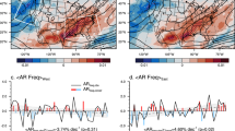 These results provide insight and nuance into earlier classifications of precipitation frequency changes by intensity categories for California16,41,42,43. Generally speaking, the probability density function of daily precipitation is projected to favor heavy and extreme events due to reinforced AR activity in a warmer climate, while the frequency of medium-low-intensity precipitation dwindles as the wintertime circulation over the north-eastern Pacific generally becomes more anticyclonic44,45, the storm track migrates poleward46, and mid-latitude cyclones respond by generally diminishing in frequency44,46. Other results indicate a strengthening and SE-ward extension of the NE Pacific jet stream in the historical jet exit region west of California46,47. This is consistent with a stronger and more SE-ward extensive Aleutian Low, which, in combination with a more poleward-extensive Subtropical High, promotes stronger vapor transport into California16 bolstering AR activity there but displacing cold-frontal convection northward. While examination of these somewhat competing dynamical mechanisms in the Real-5 GCMs is beyond the scope of the current work, we reiterate that the largest decrease in precipitation frequency occurs in the shoulder seasons21, while the largest increase in extreme precipitation should occur at the peak of the AR season (Fig. S4), which in California is winter.
