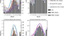 The simulated track, intensity and RMW in both historical and PGW experiments can be used to drive the SLOSH model and evaluate the storm surge change in a warmer climate. Storm surge magnitude is influenced by a number of factors, such as TC intensity, size, storm forward speed and angle of approaching to the coast30. An accurate storm surge simulation requires a high quality WRF replication of all these factors for the three TCs. The shape of the local coastline can also affect the height of storm surge30. All the combined factors make it challenging to accurately re-simulate the storm surges. Storm surges induced by the three selected TCs were observed by five tide stations in Hong Kong, whose names and locations can be seen in Fig. 5b. It can be seen that three of the five stations are in the narrow bays and surrounded by mountainous areas, making it hard to parameterize the wind field well near the stations and to replicate storm surges. Storm surge induced by TC Victor (1997) is overestimated for all stations. This obvious overestimation is highly related with the simulated TC track bias. By taking close investigation of TC Victorâs location when approaching to Hong Kong, it can be found the observed closest distance of TC Victorâs center to Hong Kong is 10âkm in the west. The RMW of TC Victor before landfall was ~70âkm (See Fig. 4b), which indicates most of the tide stations were in the TCâs calm center (Hong Kong is just ~55âkm from the west part to east). However, the model simulated closest distance between the TC center and Hong Kong is ~40âkm, in the west of Hong Kong. Thus, all the tide stations are located in the places of close to RMW and experience much stronger winds than observed. Interestingly, Tsim Bei Tsui station is in the northeast quarter of the simulated TC when it approached to Hong Kong, experiencing the strongest wind and highest storm surge overestimation (52âcm higher). While Quarry Bay is in the east part of the TC, and is affected by the second strongest wind, introducing the second overestimation (30âcm). At the meantime, Waglan Island is in the southeast quarter of the TC, where the weakest wind exists compared with the other 3 stations, and it experiences the weakest overestimation (17âcm). Storm surge induced by TC Hagupit (2008) is systematically slightly underestimated (see S/O ratio in Table 1, where S is short for simulated and O for observed storm surge). By contrast, storm surges induced by TC Utor (2001) are largely underestimated, especially at Waglan Island and Shek Pik (with the S/O ratio less than 15%). One reason for the obvious underestimation could be that TC Utor (2001) has an unusually large size. It was reported by both Hong Kong Observatory (HKO) and Regional Specialized Meteorological Center (RSMC) Tokyo that the observed radius of Utor could reach up to more than 500 km31,32. However, the radius of 30âkt simulated by WRF was just within 300âkm (See Fig. 4b), meaning that TC Utorâs whole wind structure was not adequately represented. Also, it is noted that TC Utor (2001) is a special case in which it made landfall north of Hong Kong; usually this kind of systems produce weaker wind because of the sheltering effect of mountains north of Hong Kong30. For the other two TC cases, they passed by Hong Kong to its south to southwest, which is more typical for systems causing large storm surges. In the failure of storm surge simulation for TC Utor, this case was not used in the storm surge projection. Disregarding TC Utor, the station-averaged simulated storm surge height for the other two TCs is 1.28âm, which is very close to the observed value of 1.25âm, with a root mean square error (\(RMSE=\sqrt{\frac{1}{N-1}\mathop{\sum }\limits_{I=1}^{N}{({S}_{S}-{S}_{o})}^{2}}\), in which \({S}_{S}\) is simulated storm surge and \({S}_{o}\) is observed storm surge) of 0.44âm. Although the RMSE is a little larger than that given by HKO (0.31âm) which was obtained by comparing the observed storm surge height with SLOSH simulation of 99 TC cases1, considering the small sample size in this study, the simulated storm surge by SLOSH system forced by WRF outputs is still encouraging. Moreover, it should be noted that, this systematical bias may not affect our storm surge projection much, for the reason that the projected storm surge induced by TCs in the future experiments will also experience the bias in the same way. And the storm surge bias in the two TCs can be mostly removed by calculating the relative change between historical and future projection runs, because the tracks in the historical and warming runs are very similar.