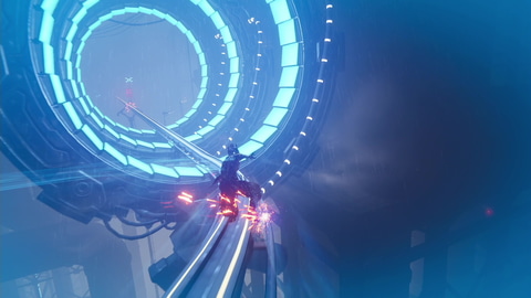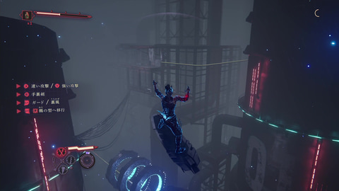 中尾氏:まず、バトルとバトルの繋ぎも含めて、とにかくステージ全体における加速感、途切れなさみたいなところを盛り込みたかったのです。アクションの新要素として、ワイヤーアクションなどを可能にする「鴉忍具」を導入する発想があり、その上でそれぞれどういうことができたらいいだろう、というのをヤクモとリュウの目線の両方で考えました。例えば、レールアクションは疾走感を象徴するアクションになりそうだったので入れたり、過去作のムササビダイブを拡張して空を飛ぶアクションを入れました。サーフィンのような水馬は、リュウだと過去作でもあった水走りを意識しています。過去作をリスペクトしつつ、ヤクモならどうするかとアプローチの方法を変えたり、ヤクモとリュウを対比させつつ、ステージ全体の加速感を出すためにはどういうシチュエーションやシークエンスが出てくるのが見ていて飽きさせず、かつ面白さを意識して作っていきました。