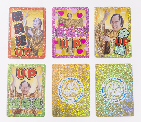 マツケンのオリジナル開運カードで、華やかなデザインとともに、運気を引き寄せるパワフルなアイテム。全6種、どれが当たるかは運次第となる。