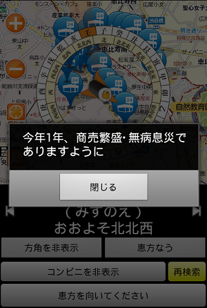 ç¯åã«é£ã¹ãã¨ç¦ãå¼ã¶ã¨ããããæµæ¹å·»ããã§ã¯ããã®å¹´ã®å¹²æ¯ã«ãã£ã¦ãé£ã¹ãéã«åããæµæ¹ããæ±ºã¾ã£ã¦ãã¾ãããæµæ¹ãããªã³ãã¯ãå¹´ãã¨ã«å¤ããæµæ¹ãæ£ç¢ºã«ç¢ºèªã§ããAndroidã¢ããªã§ããæ±è¥¿ååã§ç¤ºããã16åå²ã®æ¹è§ã§ã¯ãªãä¸å½å¼ã®24åå²ã®æ¹è§ã使ããå°å³ä¸ã«æµæ¹ã表示ãã¾ãã