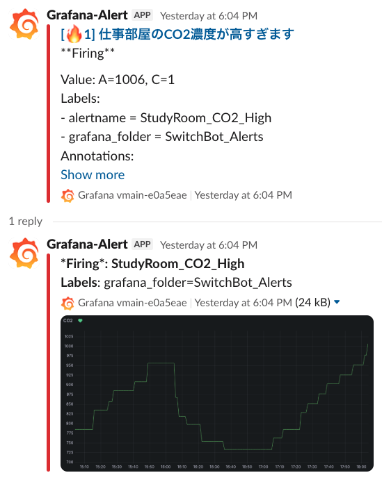 ããã§ãã¢ã©ã¼ãéç¥æã«çæãããç»åããJST表示ããã¤ãç´è¿3æéãã®ã°ã©ãã«ãªããSlackä¸ã§ããã¨è¦ãã ãã§ç¶æ³ãææ¡ã§ããããã«ãªãã¾ãã