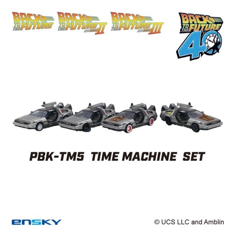 4種のデロリアンをセットに! 「バック・トゥ・ザ・フューチャー プルバックキーホルダー タイムマシンセット(40周年記念ボックス入り)」11月発売
