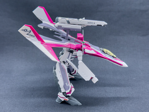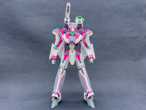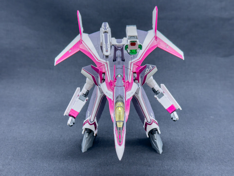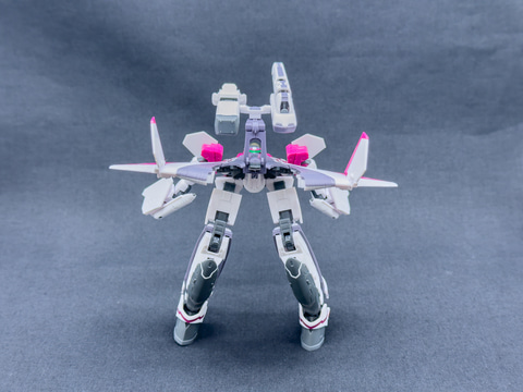 最後にガウォーク形態からファイター形態に変形させます。ファイター形態への変形プロセスもVF-31Jと同じ手順で変形させます。