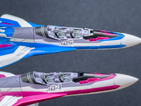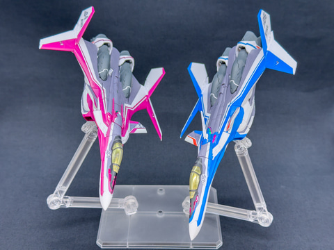ファイター形態ではアクションベースを使用した展示はもちろん、ランディングギアを展開して複数機展示することも楽しめます。