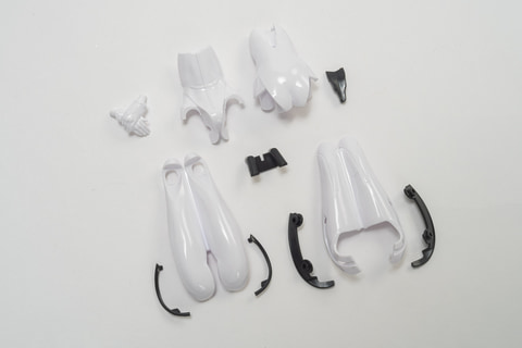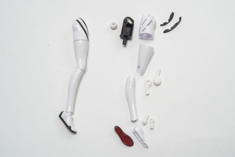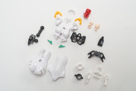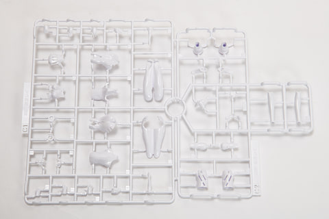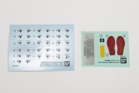 「30MP 綾波レイ(プラグスーツVer.)」では、綾波レイを印象的な白のプラグスーツ姿で立体化している。キットにはロンギヌスの槍、体育座り用の交換パーツやゲンドウのメガネといったオプションが付属し、それぞれ専用のハンドパーツで持たせられる。表情パーツはタンポ印刷済みの2種類と、印刷なしのフェイスパーツが付属し、水転写式デカールで表情を選択できる。早速キットを組み立てていこう。今回は素組みレビューに加え、一部モールドへのスミ入れを行なう。