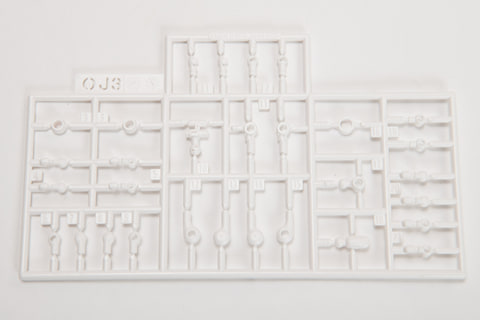 まずはランナーを見てみよう。A1~OJ3の計11枚のランナーから構成されていて、水転写式デカール、テトロンシールが1枚ずつ付属する。ランナーの数はあるもののパーツの量は控えめなので組み立てやすそうだ。