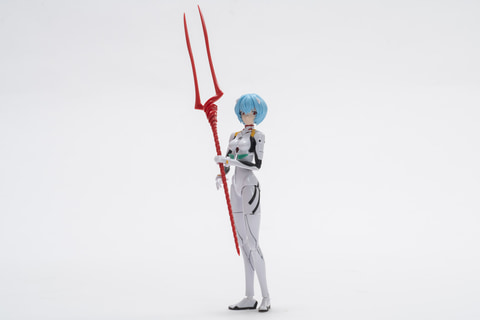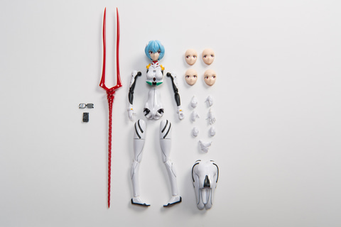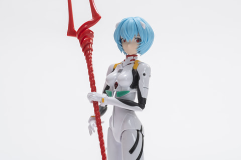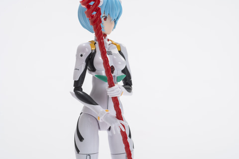キットの第一印象は、プラグスーツの艶や、表情のバリエーションが非常に豊富なことに驚いた。綾波のプラグスーツは白を基調としているが、赤・黄・緑と様々な差し色もパーツ分割で再現する。綾波の身長にそぐわない大きさの「ロンギヌスの槍」の存在感が圧倒的で、早く綾波に持たせたくなってしまった。作っていくモチベーションが自然と湧き上がってくるキットとなっている。