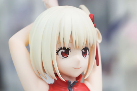 まずは、錦木千束の方からご紹介していこう。アニメでよく見慣れたキャラクターそのままの姿といったこちらのフィギュアだが、今回はまっすぐ前を見つめているような表情で、はつらつとした雰囲気を感じさせる。