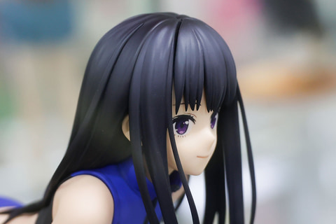 黒くて長い髪もたきなの特徴のひとつで、前髪の束になっているところや、かがんでいることでぶらりと垂れ下がっているところなど、かなり繊細に再現されているのがわかる。紫色の大きな瞳や、きゅっと閉じた口元などもキュートだ。