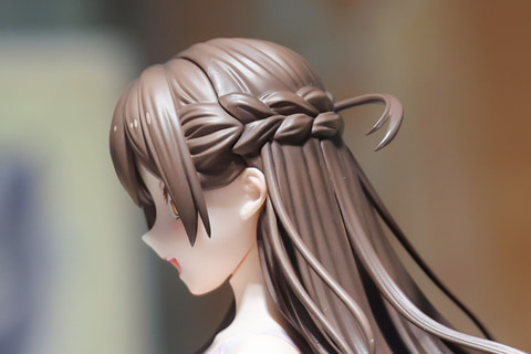 やや茶色がかった長い髪も、どこか水に濡れた直後のような、絶妙な造形になっている。この髪型部分もかなり凝った作りになっており、サイドに編み込まれた部分があったり、髪の一部が飛び出していたりと、いろいろな角度から眺めていると新たな発見があって面白い。