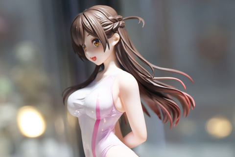 フィギュアとしては、2025年1月に発売された「水原千鶴 競泳水着Ver.」の色違いバージョンだと思えばいいだろう。ファンからの要望もあり、そちらの再販も決定している。また、撮影時には展示されていなかったが、もうひとつの色違いバージョンである「水原千鶴 水色ラインの競泳水着Ver.」も同時期に発売される予定だ。