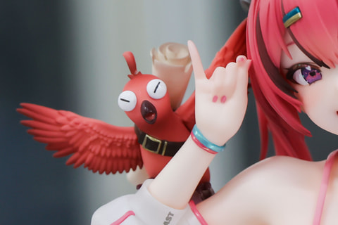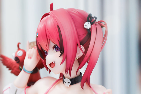 ツインテールの赤い髪が印象的な、こちらのマスト。この髪の部分も丁寧に造形されており、頭にちょこんとアホ毛が飛び出しているほか、流れるような美しい見た目になっている。前髪の一部はポイントカラーで染められており、カラフルな髪留めやヘアゴムなど、アクセサリーもしっかりと造形されている。