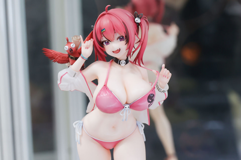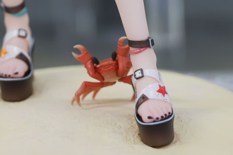 このマストが身につけているビキニには、白い紐がつけられており、なかなか可愛らしいデザインだ。足元には、真夏の砂浜を歩くにはちょうど良い厚底のサンダルを履いている。この台座部分は砂浜をイメージしたようなデザインになっていて、足元付近にはオリジナルのイラストでも描かれていたカニの姿も見える。