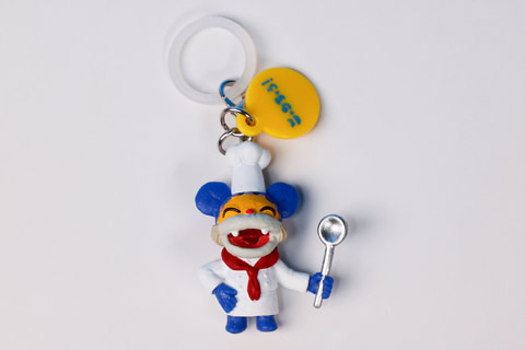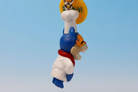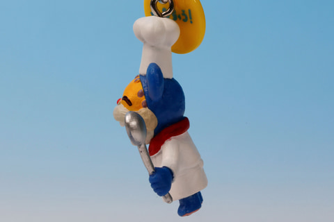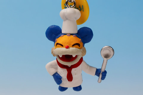 ニャンちゅうがコックになりきった姿を再現したマスコットが、こちらの「ニャンちゅう(コックさん)」だ。頭の上に長めのコック帽を被っているところも特徴的だ。これは余談だが、日本では料理長が誰なのか見つけやすいようにこのコック帽の長さで地位を表している。こちらのニャンちゅうも偉いコックさんになりきっているのかもしれない。