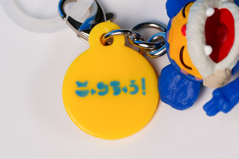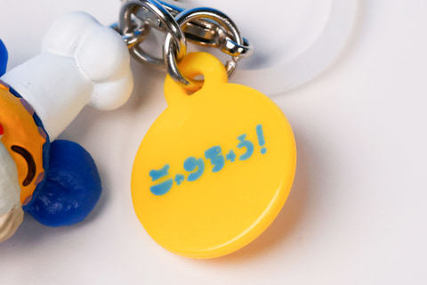 オリジナルはぬいぐるみのキャラクターだが、ニャンちゅうの大きく開けた口の中から見える舌や2本の歯、ヒゲなどの特徴もしっかりと捉えられている。また、このマスコット部分以外にも「ニャンちゅう」と書かれたプレートも付属しているところも嬉しい。