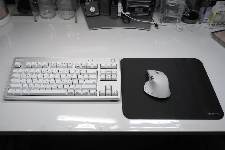 俺の場合、Photoshopでマウスによる塗りなどを頻繁に行い、そのときにマウスを高速で動かし続けることがあるので、「REALFORCEのは撮影背景用の黒いファブリックとして使おうかナ?」みたいな結論になった。