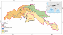 The Standard Streamflow Index (SSI)29,46 (also called the Streamflow Drought Index and the Streamflow Runoff Index) is used to quantify and analyze hydrological droughts at catchment outlets in this study. The SSI is a widely used hydrological drought index, particularly effective for monitoring drought conditions in regions with conditions similar to Pakistan. Other similar indices include the Streamflow Drought Index (SDI), Surface Water Supply Index (SWSI), and Standardized Runoff Index (SRI). While these indices are valuable, SSI offers distinct advantages over these, e.g. it is derived directly from streamflow data, providing a standardized measure that facilitates comparison across different temporal and spatial scales47,48,49. This standardization allows for consistent monitoring and assessment of hydrological droughts. Given these strengths, SSI is often preferred for hydrological drought monitoring, offering a reliable and efficient means to assess and compare drought conditions across various regions.