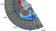 Fields of monthly mean sea ice concentration (SIC) computed using the Bootstrap version 2 algorithm (Comiso 2000) were obtained on a 25 km resolution grid from the US National Snow and Ice Data Center (www.nsidc.org). A number of algorithms are available to convert the satellite passive microwave measurements to sea ice parameters, however, the differences between the resultant data are small (Ivanova et al. 2014). We decided to use the Bootstrap 2 data since it has been used in many previous studies and the sea ice trends in the recent IPCC Assessment Report 5 were determined using this algorithm. There is very close agreement between the sea ice trends determined using the Bootstrap 2 and NASA Team algorithms (Intergovernmental Panel on Climate Change 2013). Annual and seasonal mean SIEs were computed for the Antarctic as a whole and the five sectors (Weddell Sea, Indian Ocean, western Pacific Ocean, Ross Sea and Bellingshausen/Amundsen Sea) used in a number of earlier studies (e.g. Zwally et al. 2002) and shown on Fig. 1. SIE was computed as the total area of all 25 km boxes where the SIC exceeded 15 %. As in many previous studies, we examine linear trends in SIE since this is a good fit to the data.