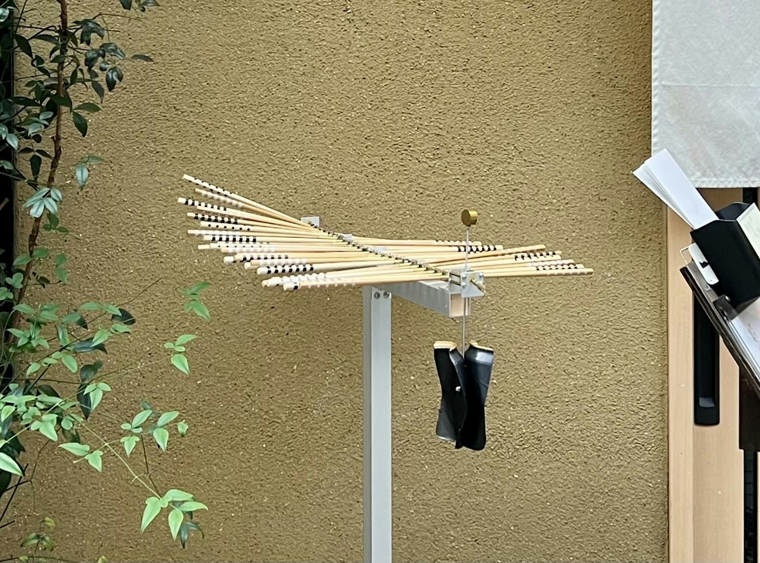 「スキマプロジェクト」より、片岡純也+岩竹理恵《呼吸する裏路地》。菜箸などを使ったオブジェを日本料理店の店先に置き、路地裏に吹く風を可視化
