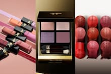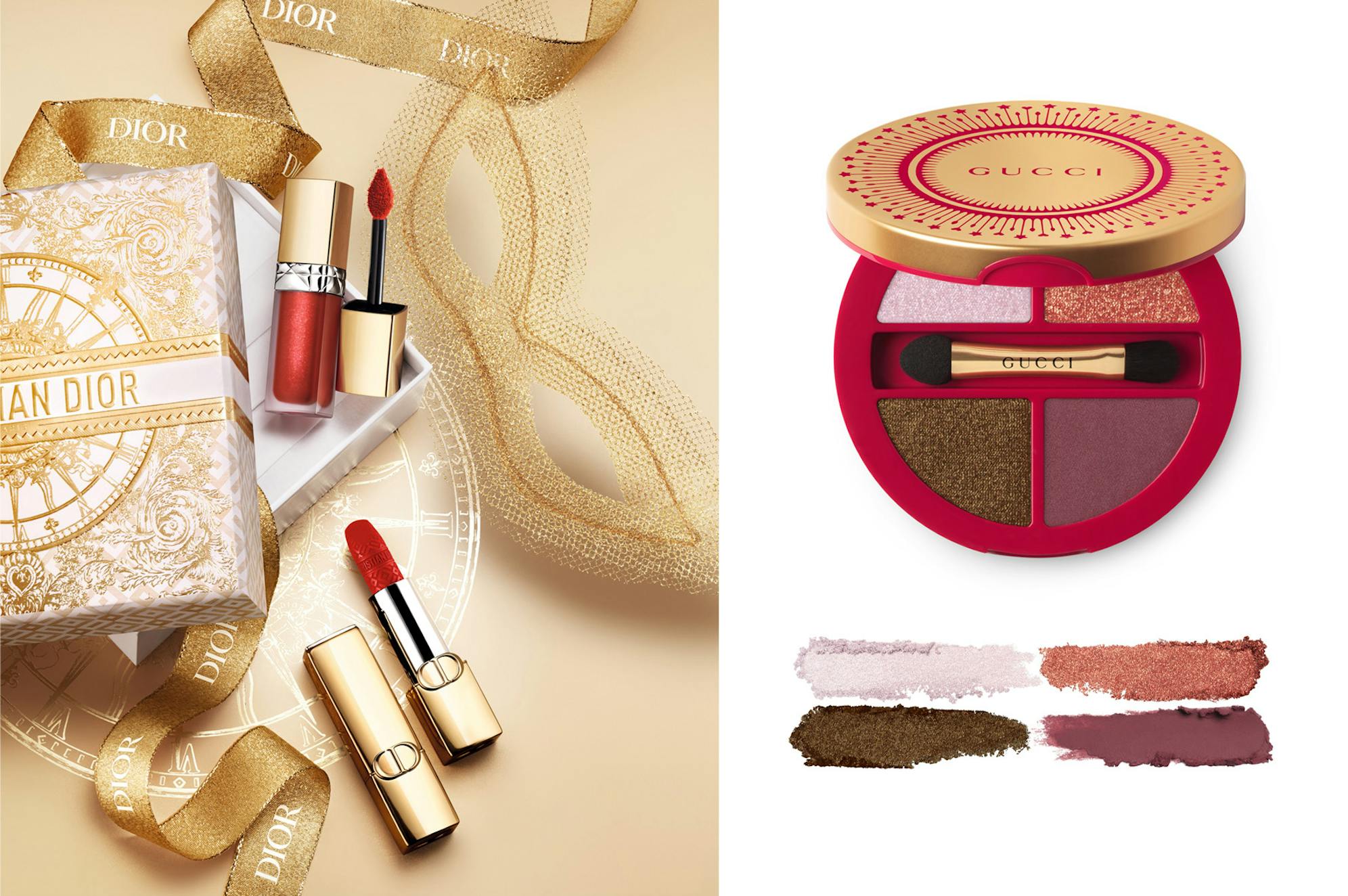 ゴールドのケース、限定デザインが施されたカラー部分も特別仕様の口紅。また大粒グリッターが煌(きら)めくバーガンディー色のリキッドルージュも、パーティーメークにふさわしい艶(あで)やかさ。