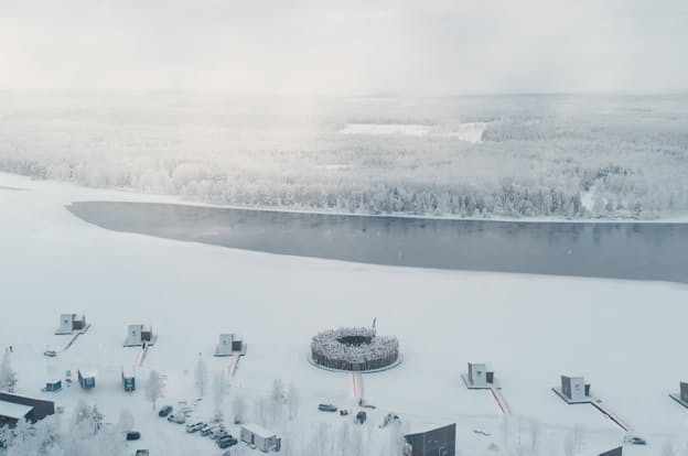北欧の川に浮かぶホテル——冬は雪と氷の世界に——