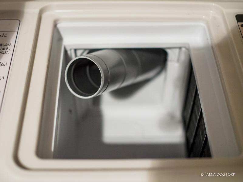 一応、説明書では掃除機に取り付ける「スイコミノズル」なるアタッチメントで乾燥フィルターの差し込み口から突っ込んで埃を吸い取れ…とありますが、掃除機の吸引力が届く範囲なんだたかだか知れてますし、実際このスイコミノズルは大して奥まで入りません。