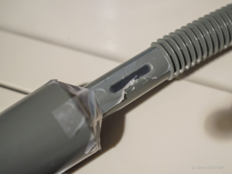 空の掃除機で吸ってみたらそこそこ埃が取れました また「スイコミノズル」の途中に穴が空いた状態だと吸引力が逃げてしまうので(何かしらの保護のためだと思いますが)、私はテープで塞いでしまっています。