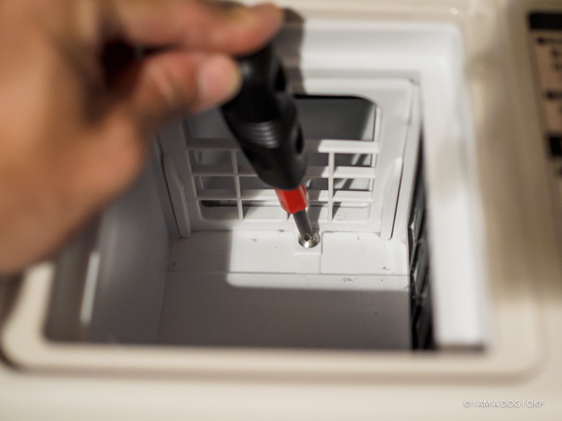 洗濯数回分放置していましたが、これだけ埃が取れました さらに、毎回やる必要はありませんが、乾燥フィルター内のネジを1箇所だけ外すことで、よりブラシなどが突っ込みやすくなります(ネジを乾燥ダクト内に落とさないよう注意!)。